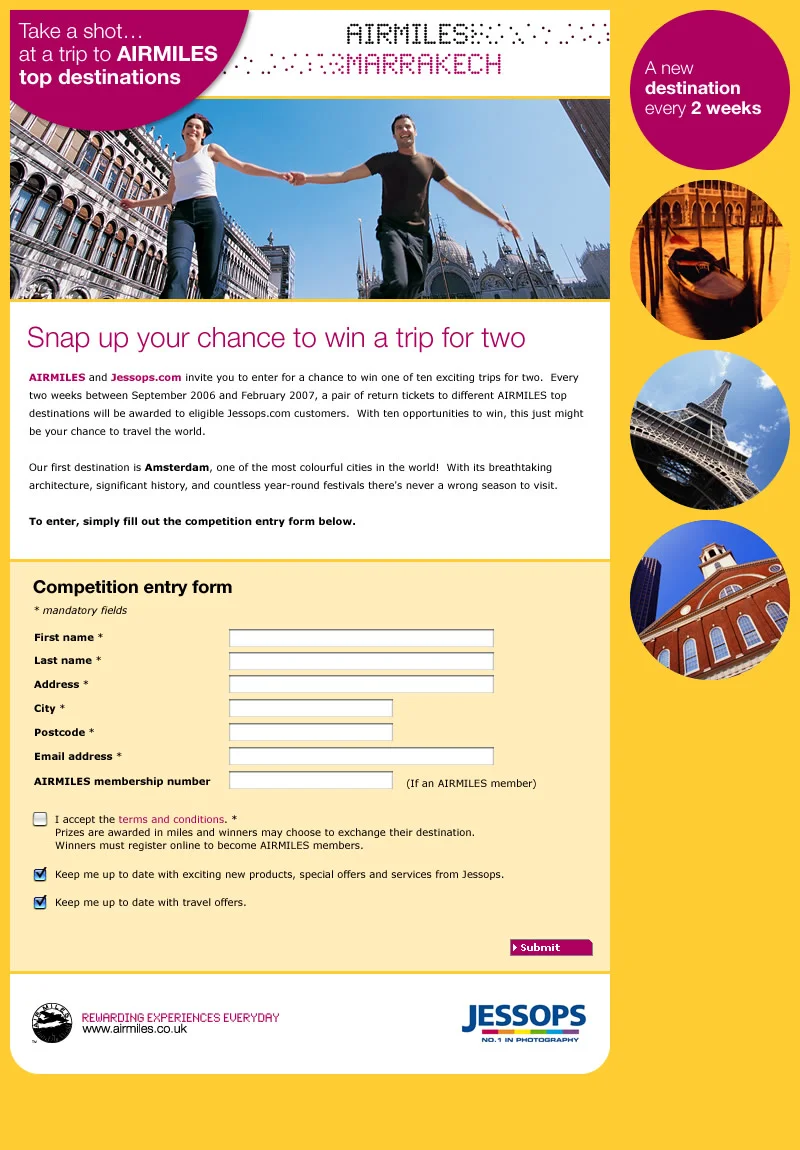 A landing page for a partner promotion between Airmiles UK and Jessops.com (2006)