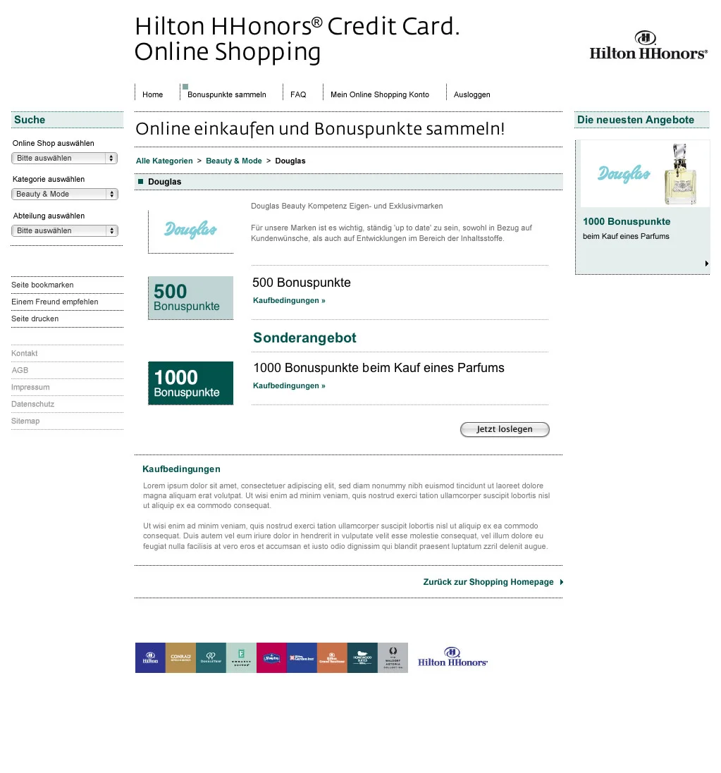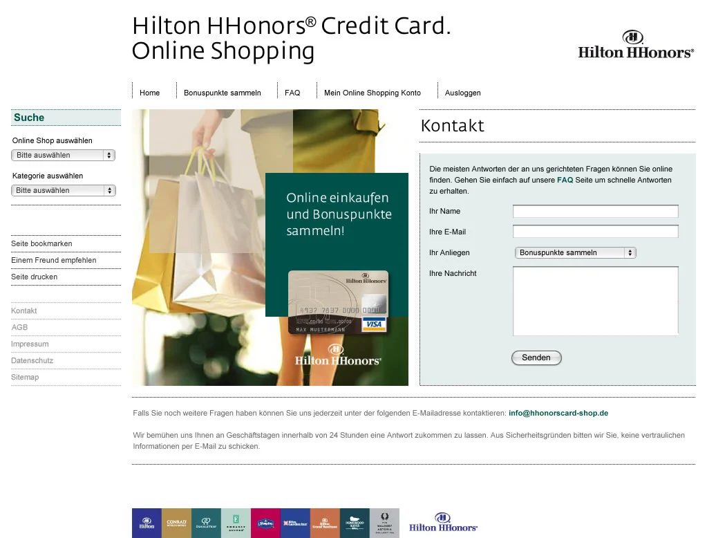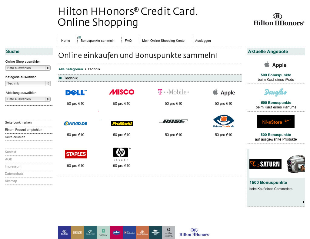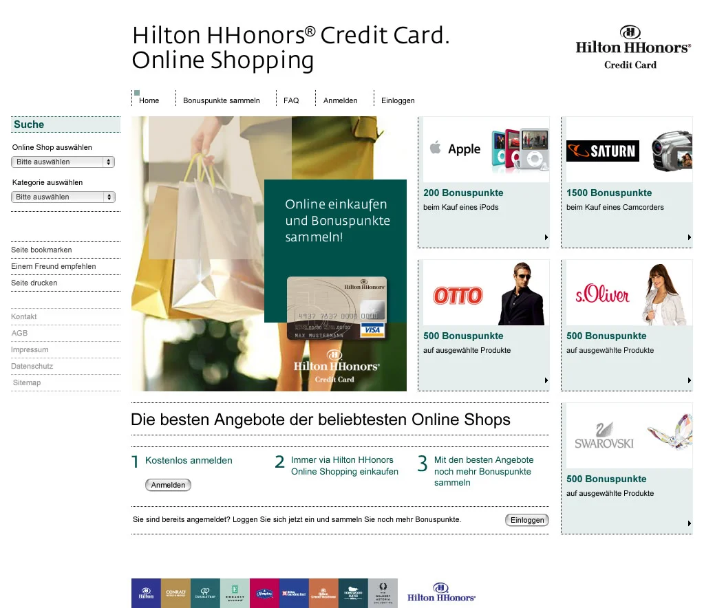 An online shopping rewards portal for Hilton HHonors Credit Card, Germany. (2008)